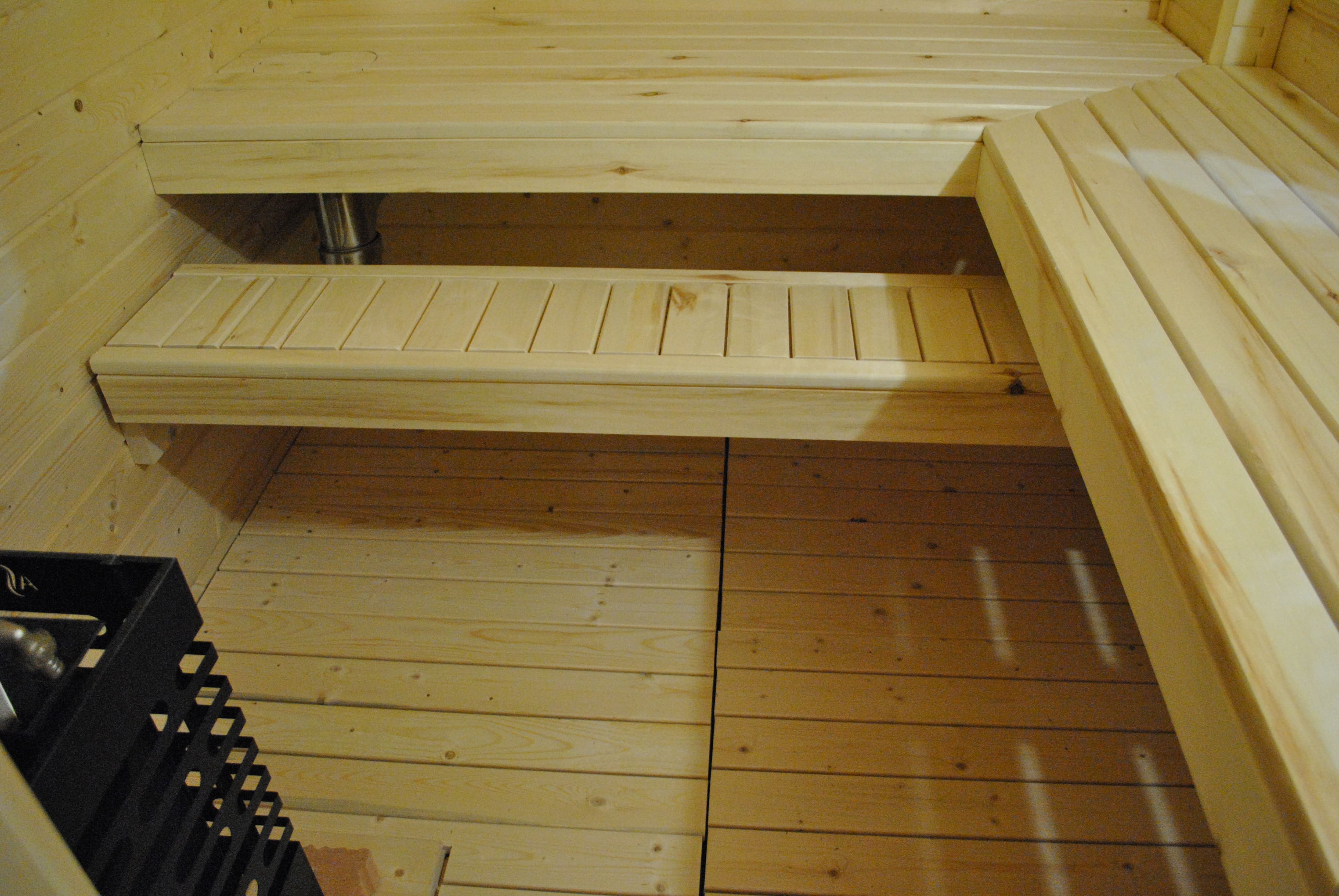 Парная, комната отдыха: шпунтованная доска из сосны класс - АБ. Пирог проливных полов в душевой конструктивно отличается.